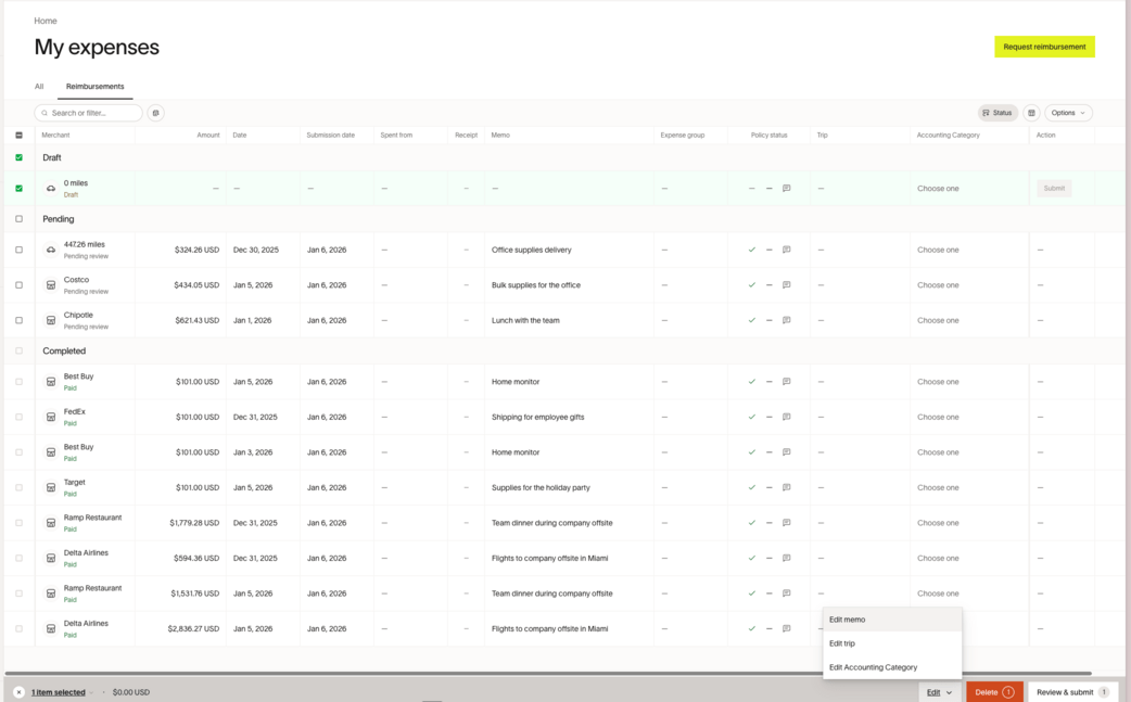 To be clear, we are only using Ramp for expense reimbursements. We aren’t actually using the Ramp card or other funding mechanisms or travel booking. Everything is done as a reimbursement for our personal credit cards.