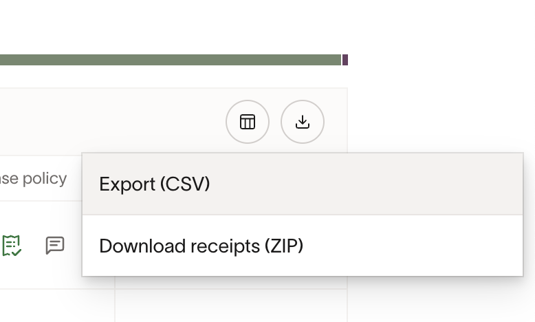 From there, click in to your trip, and you should see a list of expenses at the bottom. You can click on the little “Download” icon at the upper-right hand side of the table to download a CSV / ZIP of your receipts: