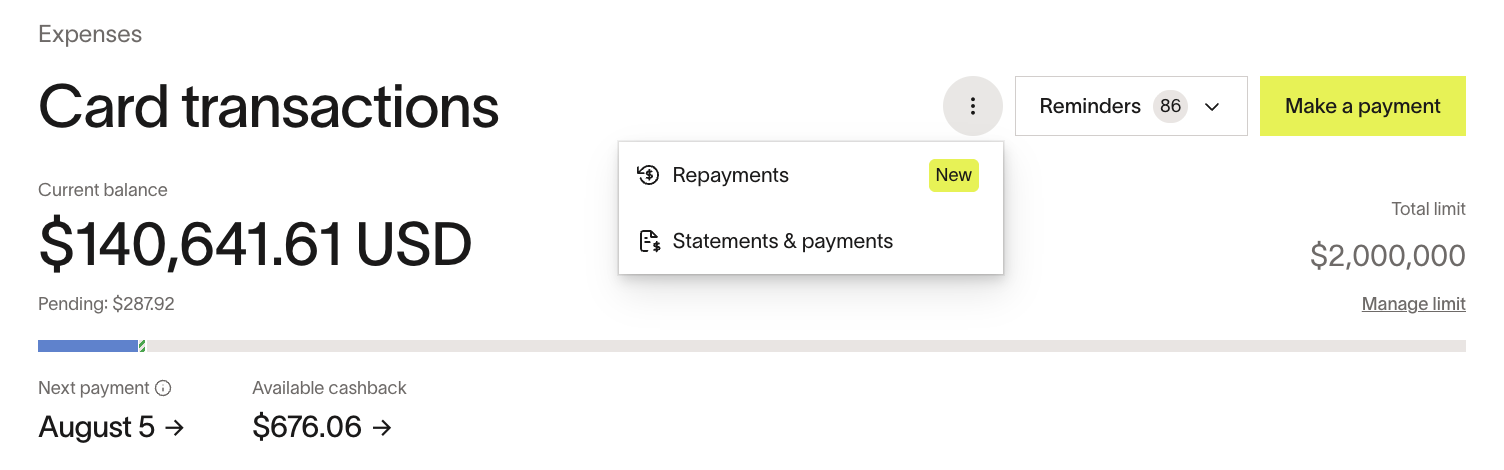 Hi Sarah - To pull the report you’re looking for, you can use the ‘Repayment Status’ filter on either the Accounting tab or Card Transactions tab. Additionally, you can view all repayments by going to Expenses > Card Transactions > click on the ‘…’ menu next to ‘Reminders’.